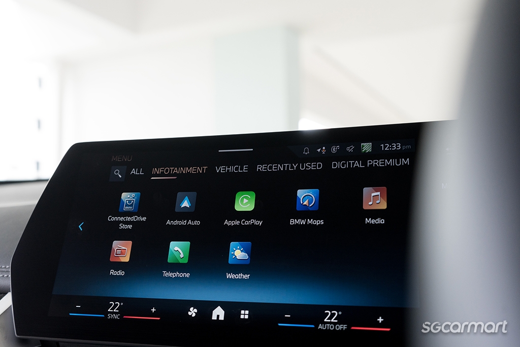 Seperti halnya X1, sistem infotainment ini ditampilkan melalui layar sentuh 10,7 inci yang dipasangkan dengan kluster instrumen pengemudi 10,25 inci. Bagi mereka yang menemukan array ubin pada layar menu utama Sistem Operasi 8 sedikit terlalu banyak untuk navigasi cepat antara sub-menu, sistem baru mengurutkan ubin ini ke dalam beberapa kategori yang Anda akses melalui tab yang terletak tepat di atas, bukan slider yang terletak di ujung kiri layar.