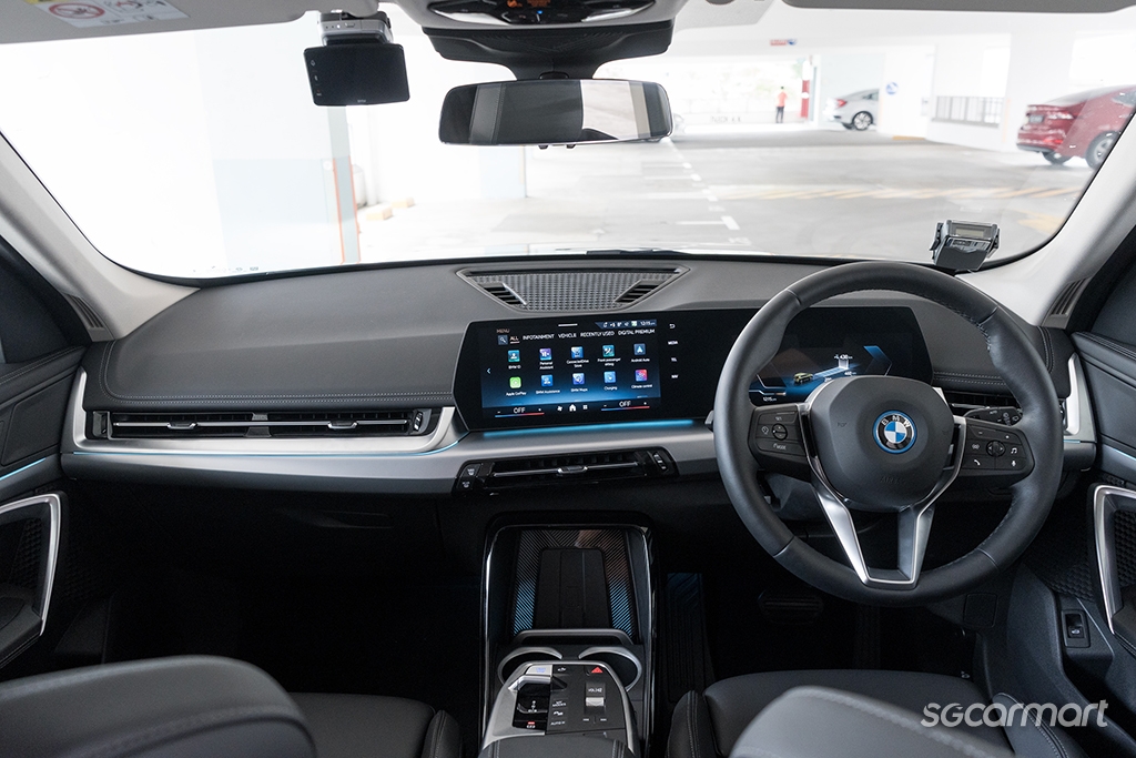 Mari kita singkirkan angka-angka penting. iX1 ini dianimasikan oleh baterai 64.8kWh, yang memberikan jangkauan WLTP 474km. Baterai ini menggerakkan motor listrik 148bhp (batas daya untuk mobil listrik agar memenuhi syarat untuk pendaftaran dengan Cat A COE lebih tinggi daripada mobil bensin) yang juga menghasilkan total torsi 250Nm – angka lebih besar daripada yang ditawarkan oleh BMW X1 sDrive16i yang kami uji.